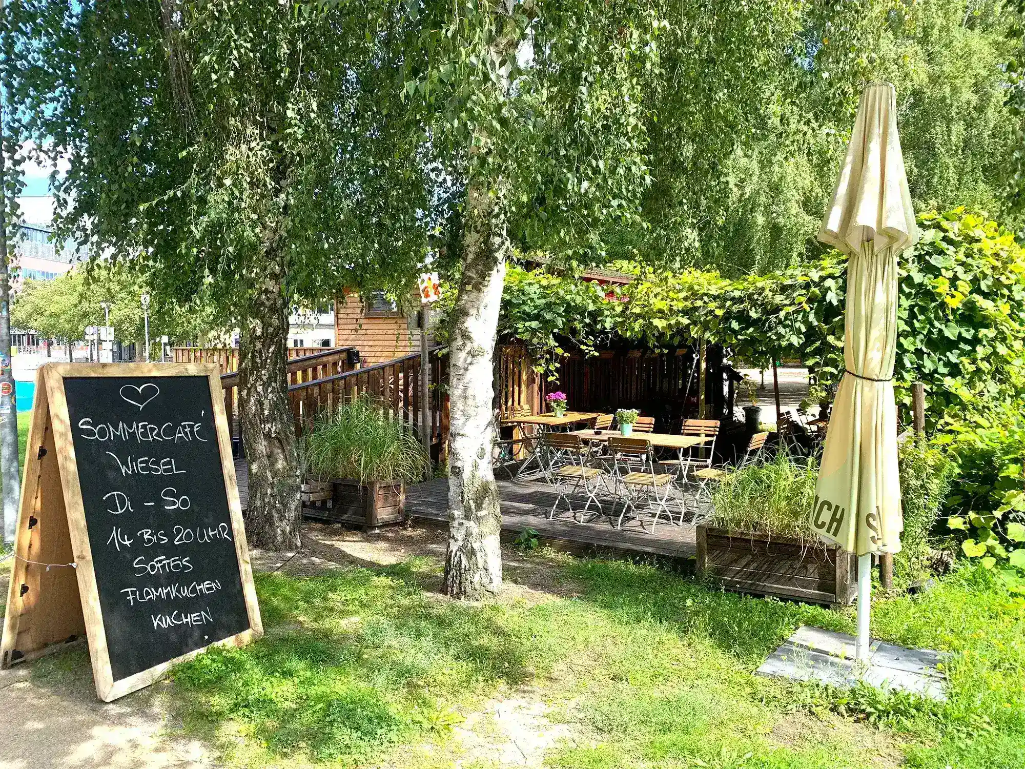 Willkommen im Sommercafé Wiesel ☀️ Unser kleines Café mit Herz verwöhnt euch mit einer 🍰 süßen Auszeit mit ✨ lokalen Spezialitäten und Hand- und Hausgemachtem. Direkt am Spielplatz Floßpiraten 🛝 im Kunst- und Kulturquartier Schiffbauergasse in Potsdam ❤️ Kommt vorbei!